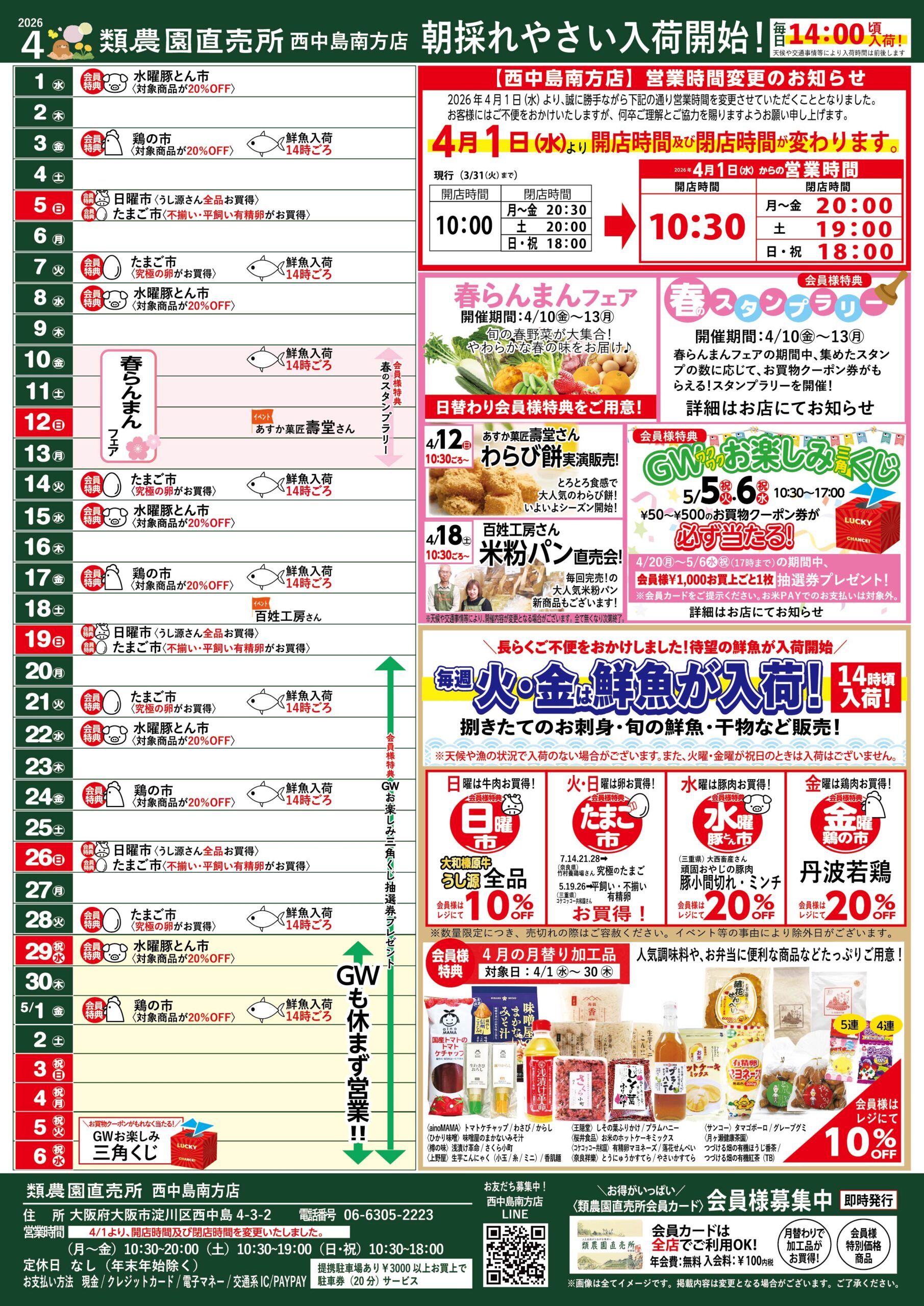 4/1(水)より、西中島南方店の営業時間を変更いたします