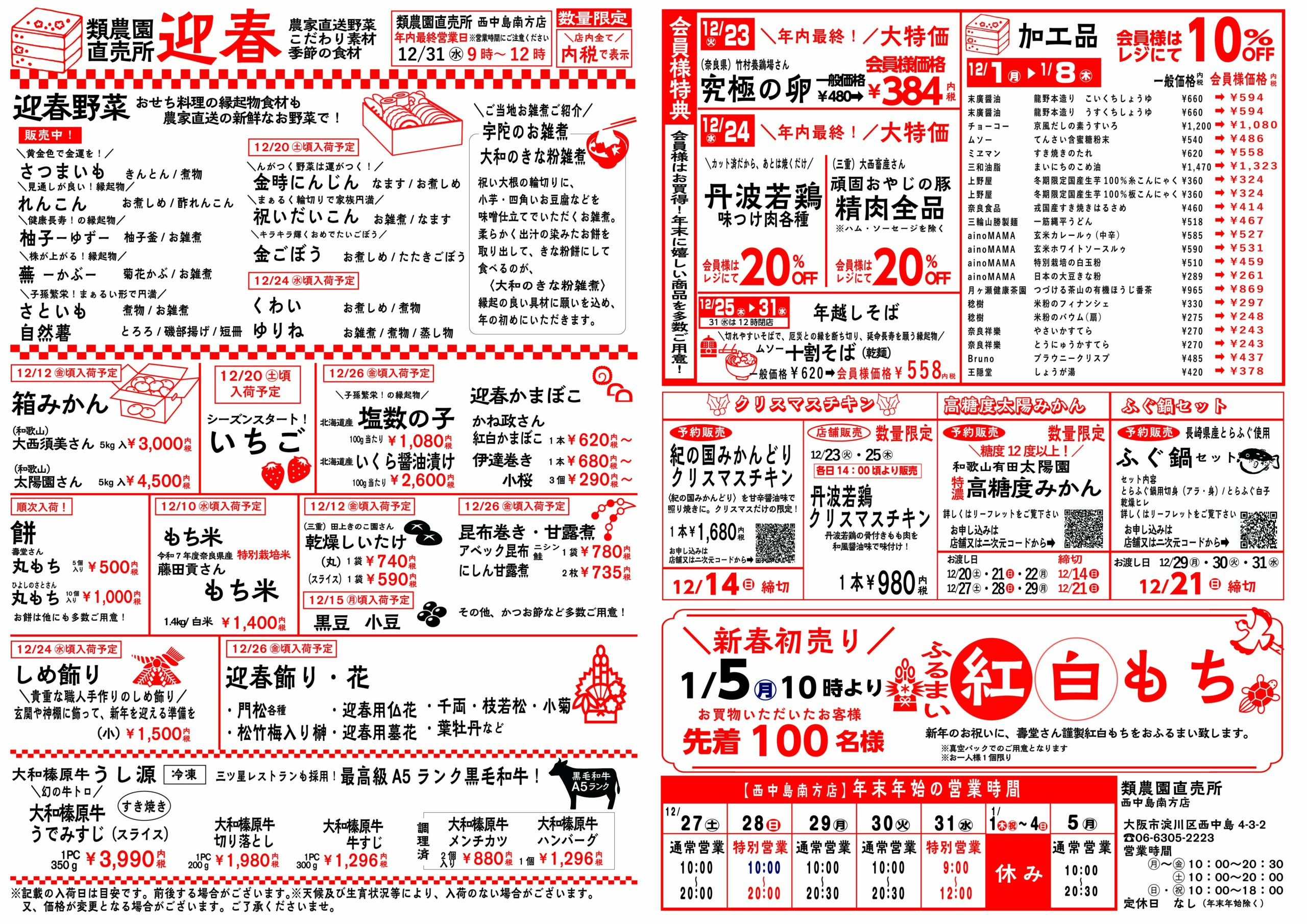 類農園直売所 全店の年末年始の営業時間はこちら