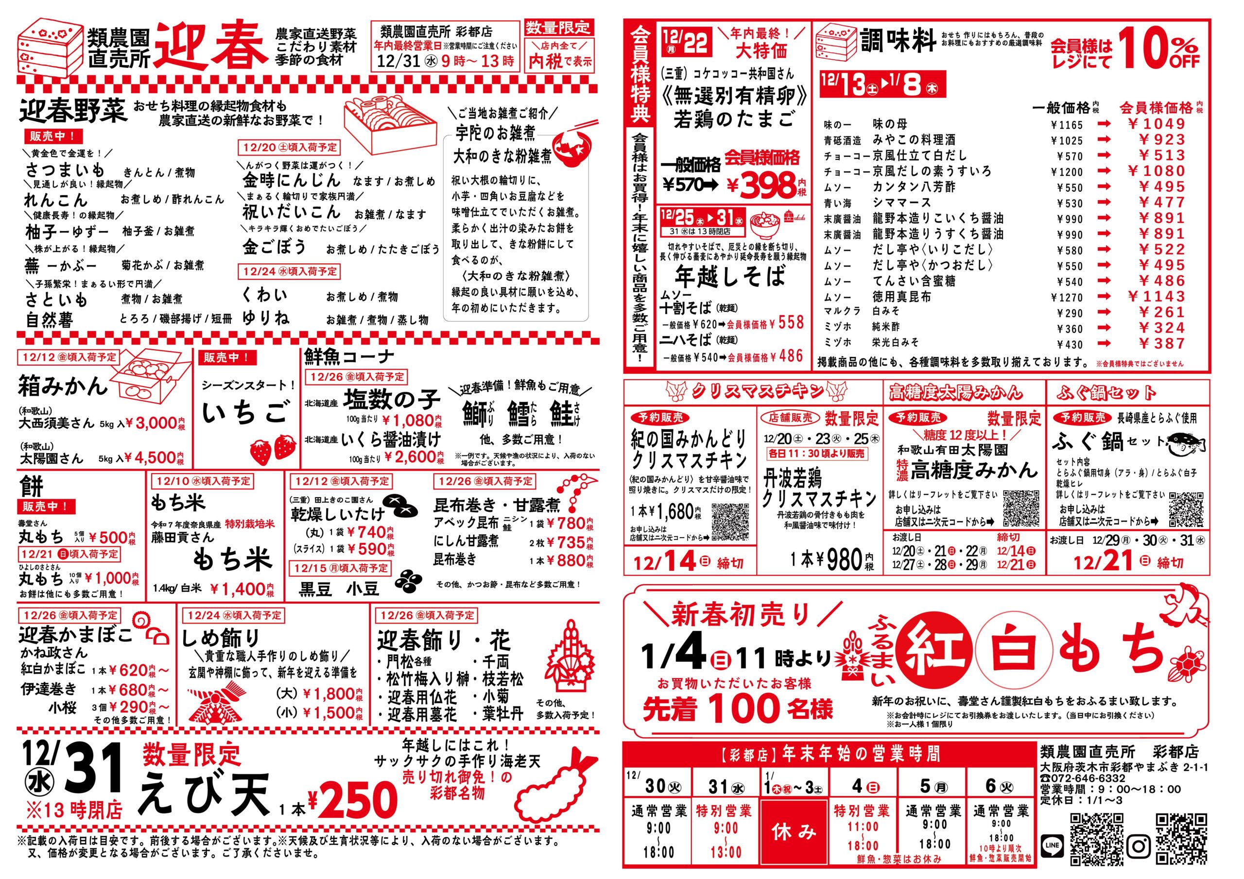 類農園直売所 全店の年末年始の営業時間はこちら